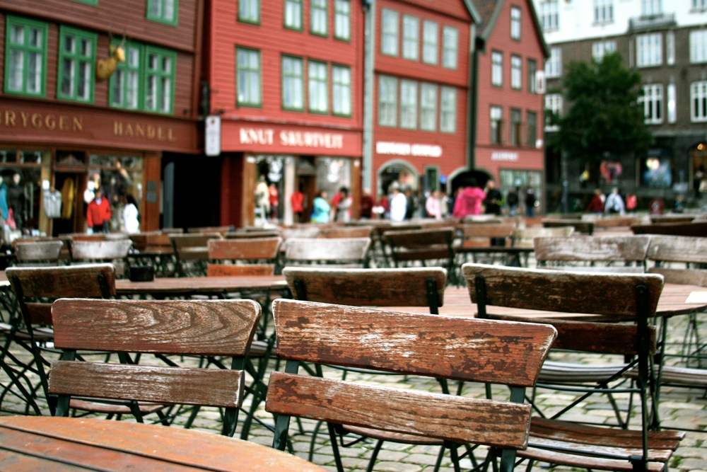 Jour 10 - la lumière jaune nous entoure - 6 jours qu’on attend ça !, vue splendide sur le fjord pour le petit-déjeuner au chaud dans notre hutte rouge et blanche, comme chaque matin on remet chaque chose à sa place dans les caisses puis chaque caisse s’emboite pour faire le tout cohérent et qui ne bouge pas dans le coffre, simple et efficace, l’itinéraire du jour nous emmene à Bergen en longeant les fjords, fermes marines, villages accrochés au peu de roche pas trop abrités, partout des infrastructures pour que la route soit pratiquable : renforts sous la route et contre les parois - pont pour traverser les fjords - petits tunnels pour éviter les chutes de pierres - tunnels de plusieurs kilomètres pour traverser les montages avec ronds points ou entrées et sorties de galeries vers d’autres directions, ce matin nous avons eu un message de la grand-mère de Camille - son grand-père nous a quitté - leur belle et longue histoire est un bel exemple de ce que l’on aimerait vivre - pensées émues à toi Henri, sur la route la chute d’eau de Steindalfossen nous permet de nous dégourdir les jambes, les nuages gris nous rattrapent, Bergen s’étale sur les flans de toutes les collines avoisinantes, on rejoint le port et Camille trouve une place de parking privé parfaitement placée en face du marché aux poissons et du vieux quartier en bois Bryggen - vue imprenable pour notre sandwich au chaud en attendant que le froid et le vent recule, le temps n’est vraiment pas engageant, on part à la recherche d’un camping proche - après tergiversations on se décide pour une hutte à coté d’une route passante - c’est le moins pire de ce qu’on nous propose, retour à Bergen pour visiter un tout petit peu la ville, trop de touristes, trop de villes, trop froid, on se retrouve à bouquiner dans un Starbucks, puis à déguster une soupe de poisson et des sushis au sein même du marché aux poissons et finir avec une bière dans un pub irlandais fréquentés par les vieux briscards, la bière est vraiment trop chère ici - mais qu’importe le plaisir n’en est pas moindre !