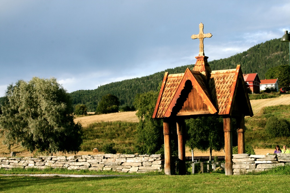 Jour 20 - grosse journée de route vers le sud pour un retour au bercail en douceur. Cela ne nous empêche pas de faire plusieurs haltes pour bouquiner avec notre thermos de thé préparé ce matin. Nous tombons par hasard sur une, puis deux, puis trois, quatre et cinq églises en bois debout (dans l’ordre : hallingdal-ål torpo stavekirke, avec son toit en ardoises, uvdal kirke où un gars de Montpellier nous demande combien de temps nous avons roulé pour venir en Norvège et un peu plus loin, l’uvdal stavkirke entourée de ses grenniers medievaux, nore stavekirke, où nous sommes seuls mais filmés et dans laquelle les croix sont toutes de guingois, heddal, la magnifique avec le soleil se couchant). Elles sont plus récentes et donc moins “authentiques” que celle de borgund, mais leur couleur et leur odeur (odeur de bois chaud comme dans un sauna) nous plaisent tout autant. le soleil est enfin au rendez-vous et nous permet d’apprécier une quantité de fermes médiévales et leurs petites “granges” atypiques à deux niveaux. malgré nos recherches assidues, pas d’élans, SNIF… Ce soir au camping, pour la première fois, nous prenons 20 minutes pour faire sécher la tente !